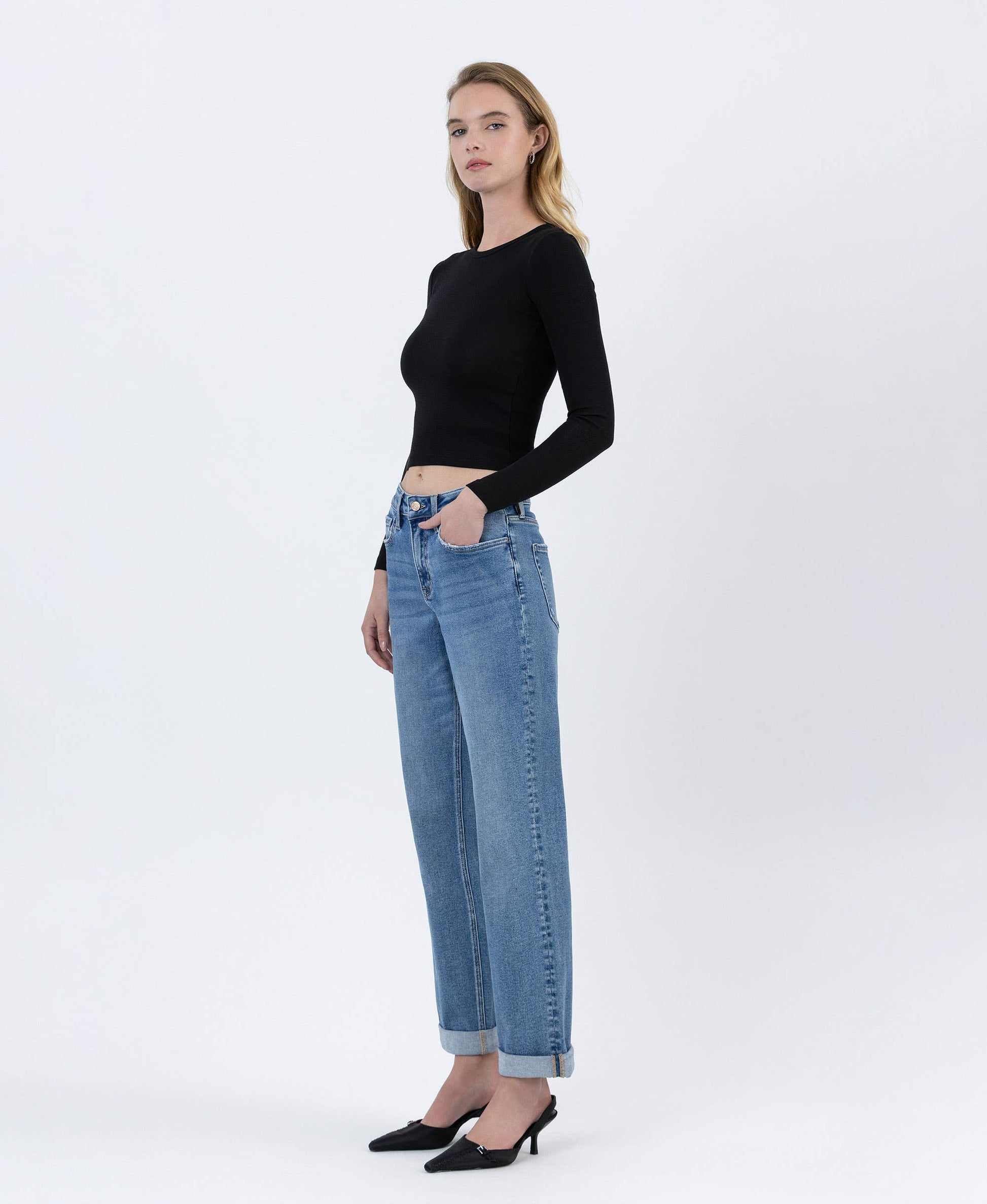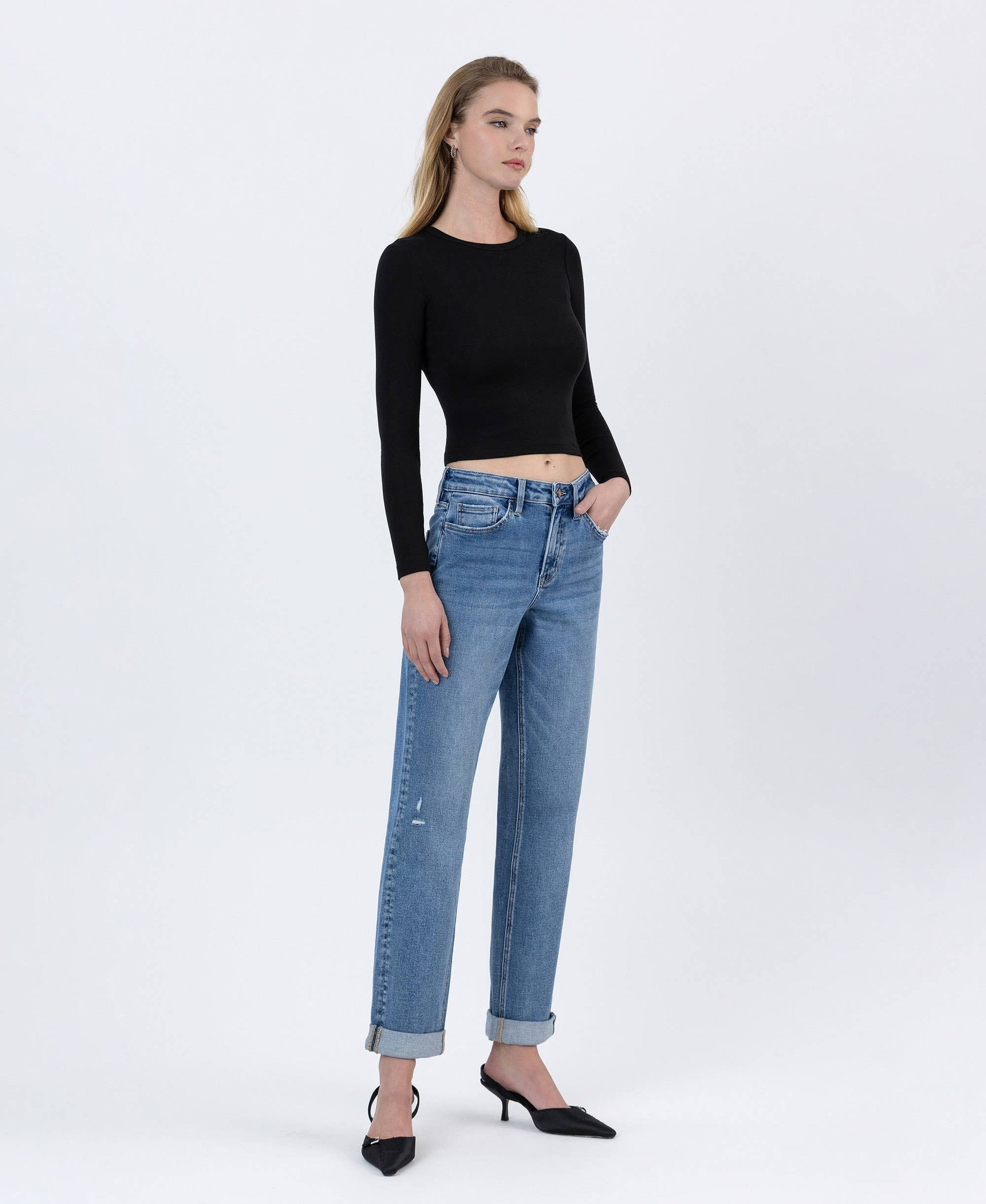 HIGH RISE CUFFED BOYFRIEND JEANS