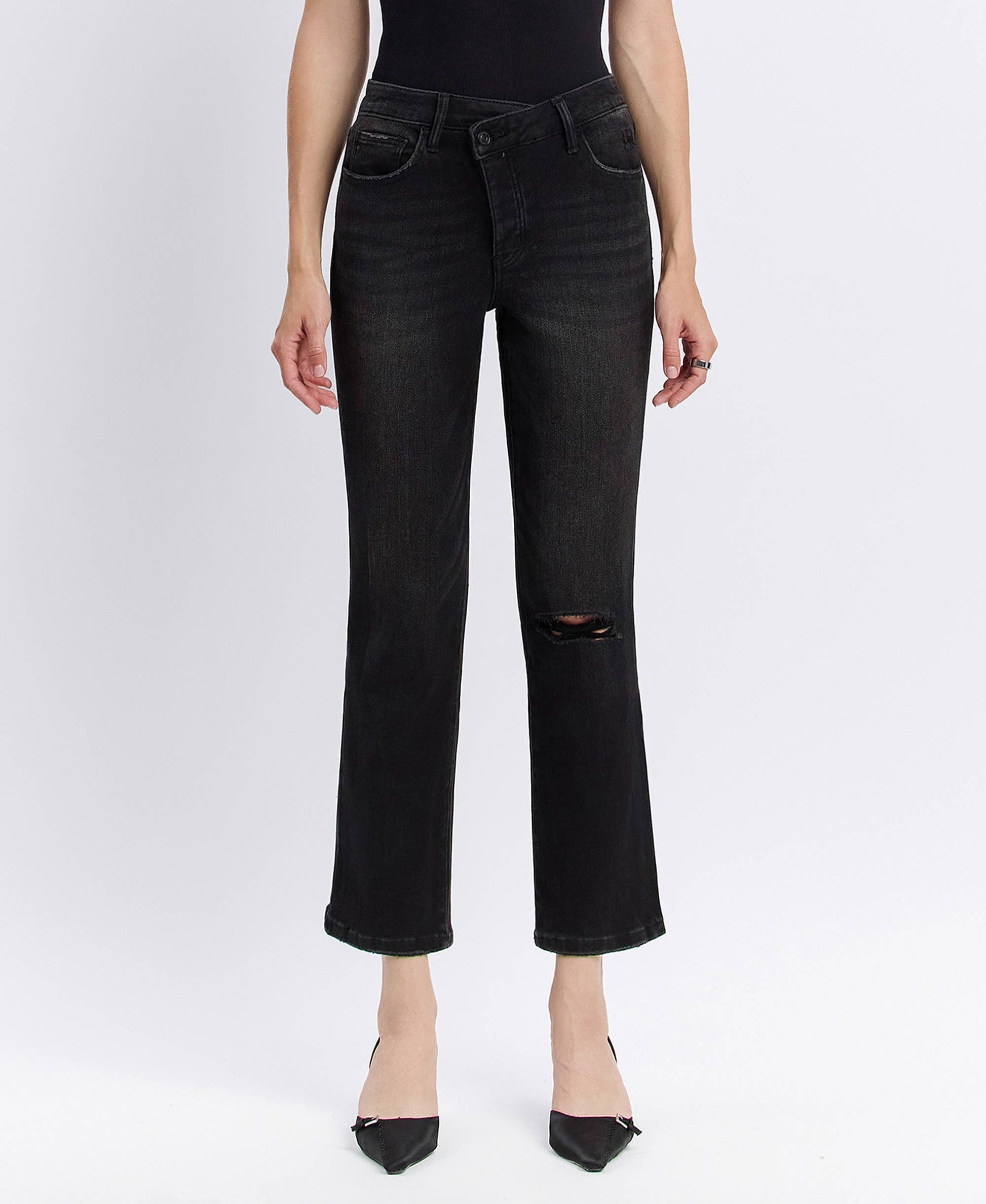 HIGH RISE DISTRESSED STRAIGHT JEANS