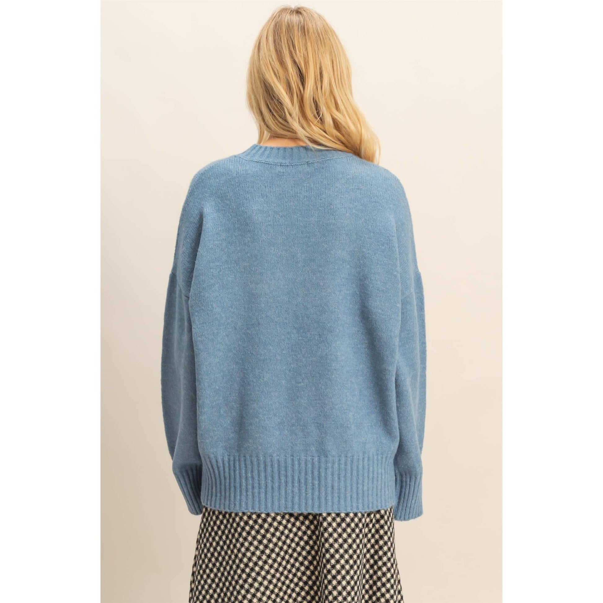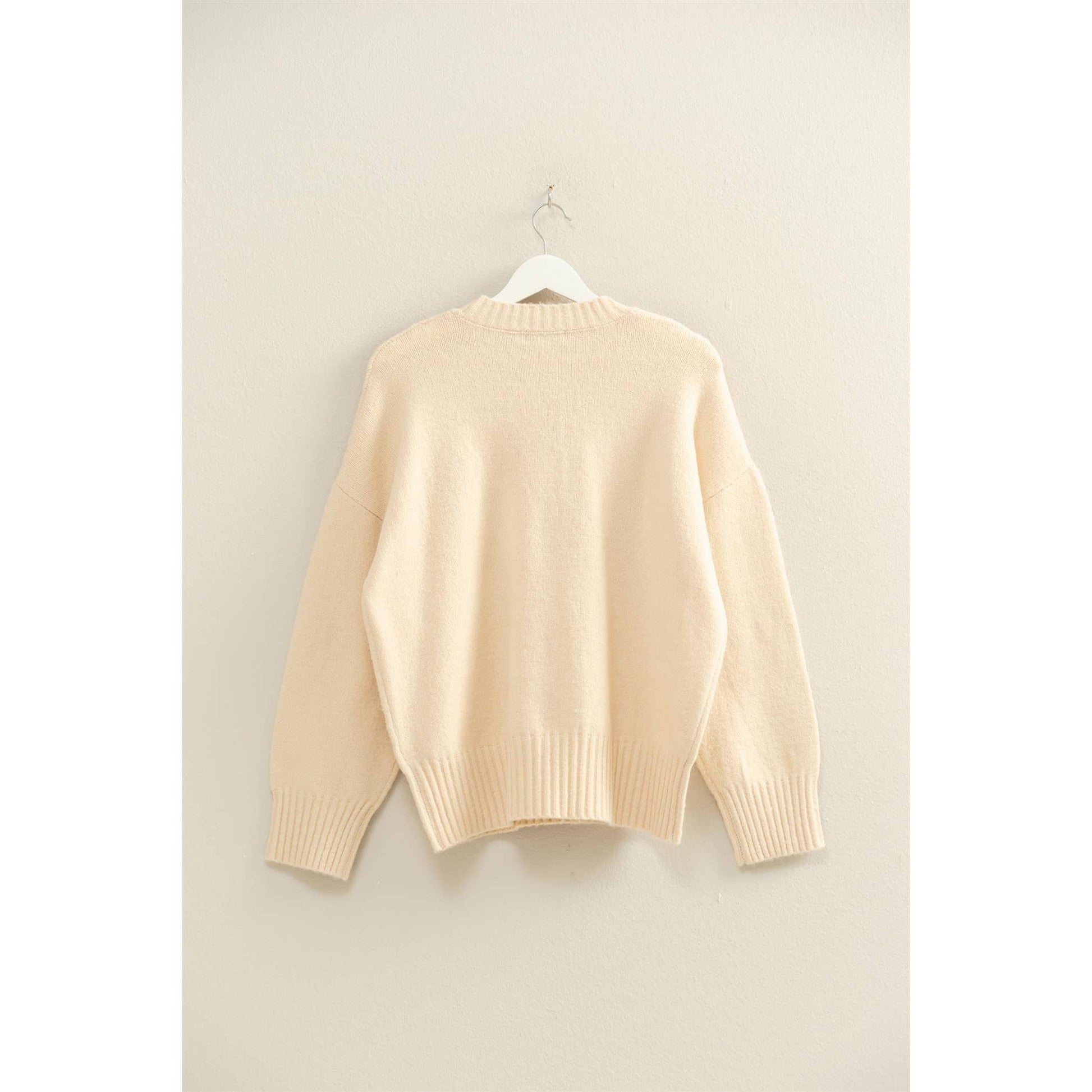 Embrace cozy fashion with this oversized sweater, perfect for stylish comfort. The drop shoulder design adds an effortlessly modern touch, making it a versatile addition to your wardrobe. Ideal for layering over collared shirts or pairing with sleek leggings, this piece transitions smoothly from a casual day out to a relaxed evening at home. Amplify its charm with minimalist accessories.
