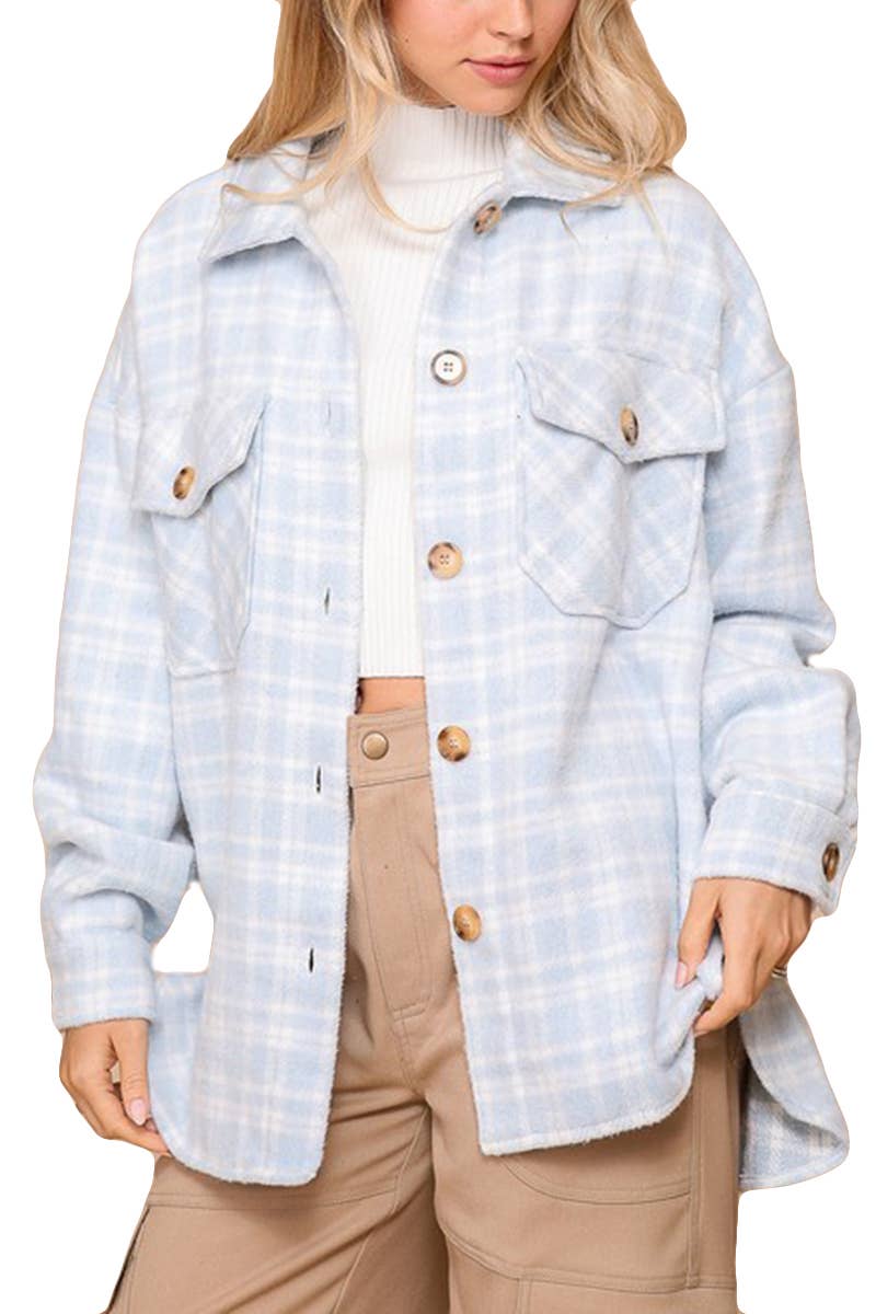Stay Cozy And Stylish With Our Long Sleeve Button-down Oversized Plaid Print Shacket, A Perfect Blend Of A Shirt And A Jacket. This Versatile Piece Is Designed To Keep You Warm While Adding A Trendy Touch To Your Wardrobe.