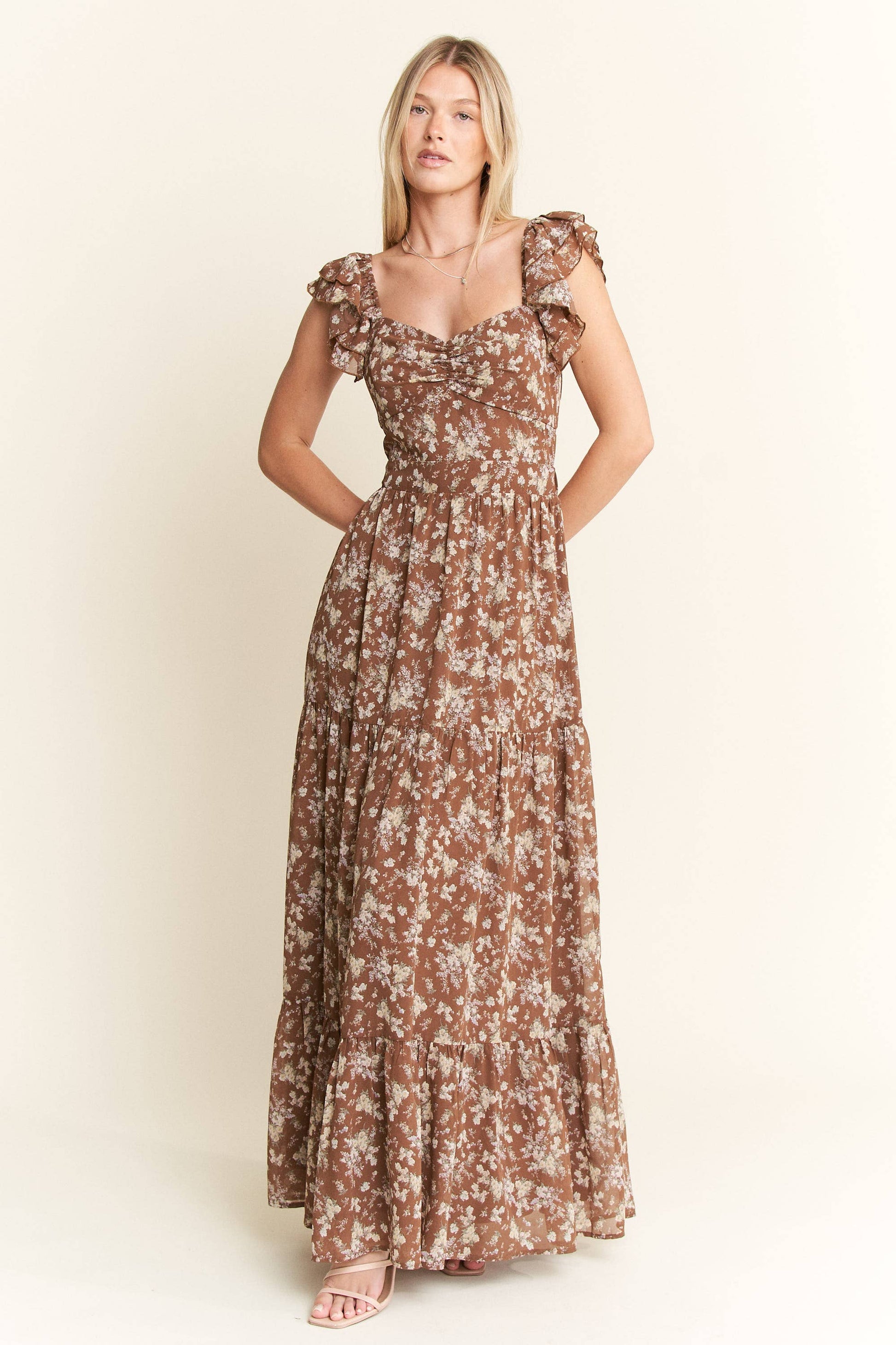 RUFFLE SLEEVE TIERED MAXI DRESS