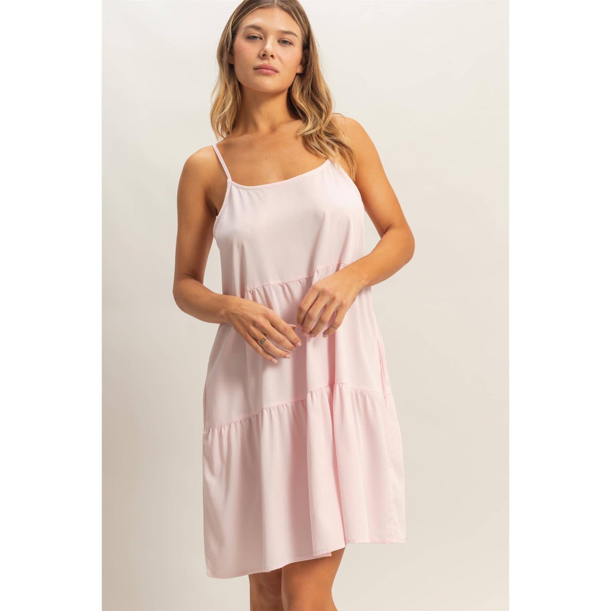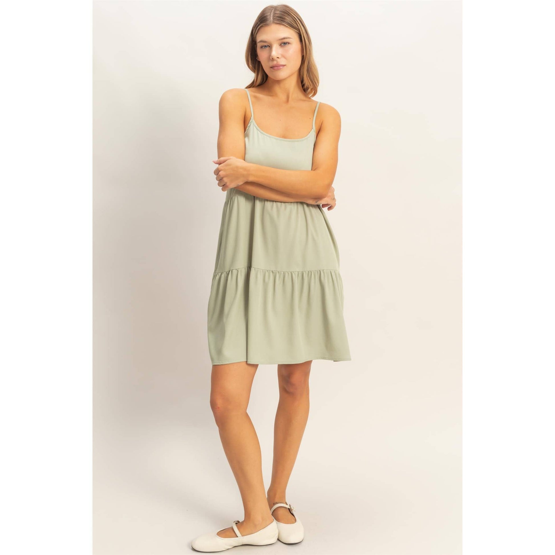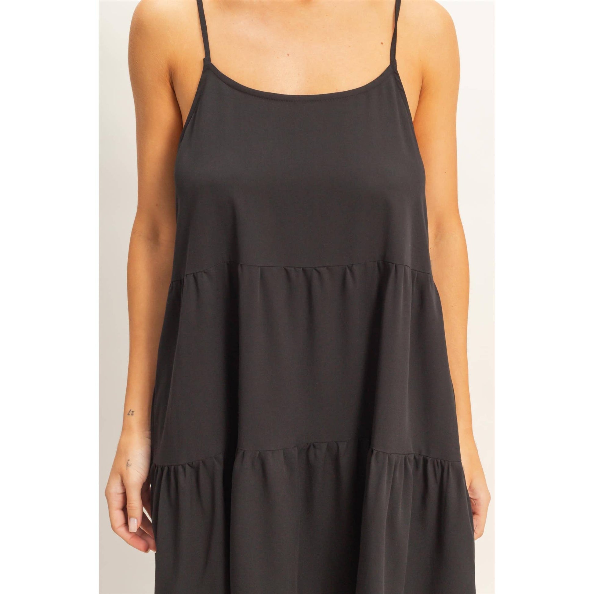 A charming tiered dress featuring delicate spaghetti straps and a relaxed silhouette. Pair with strappy sandals for a feminine look.