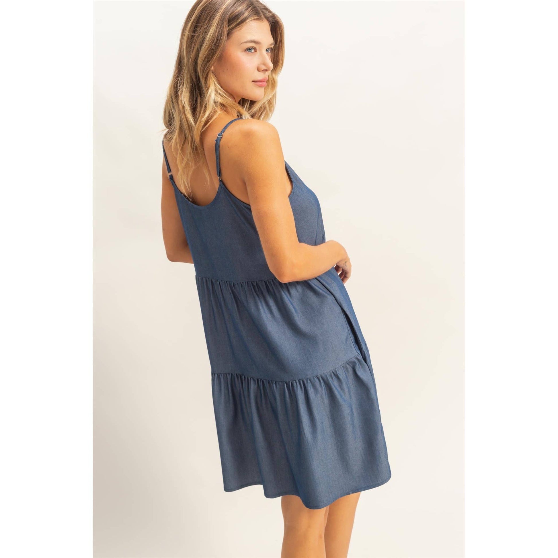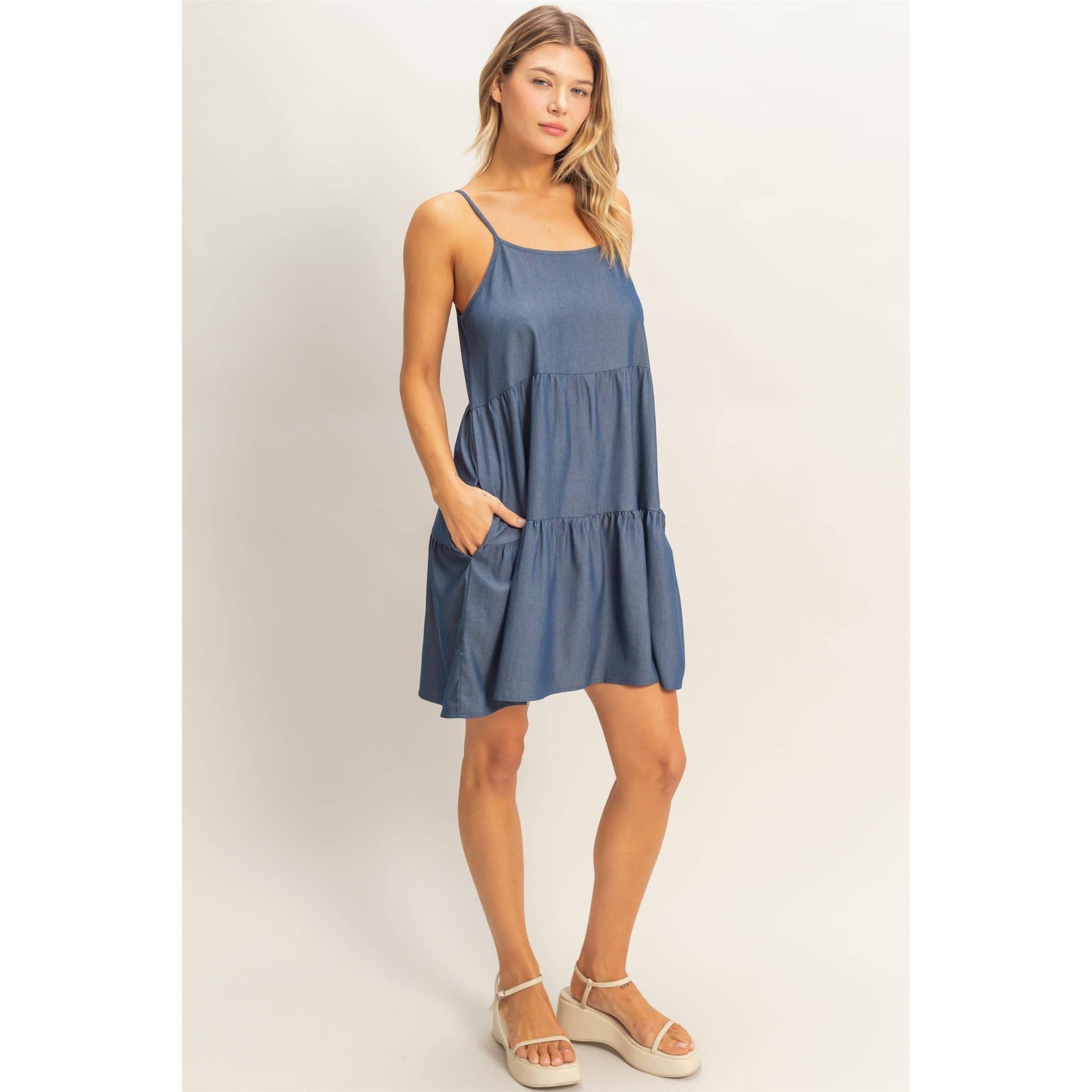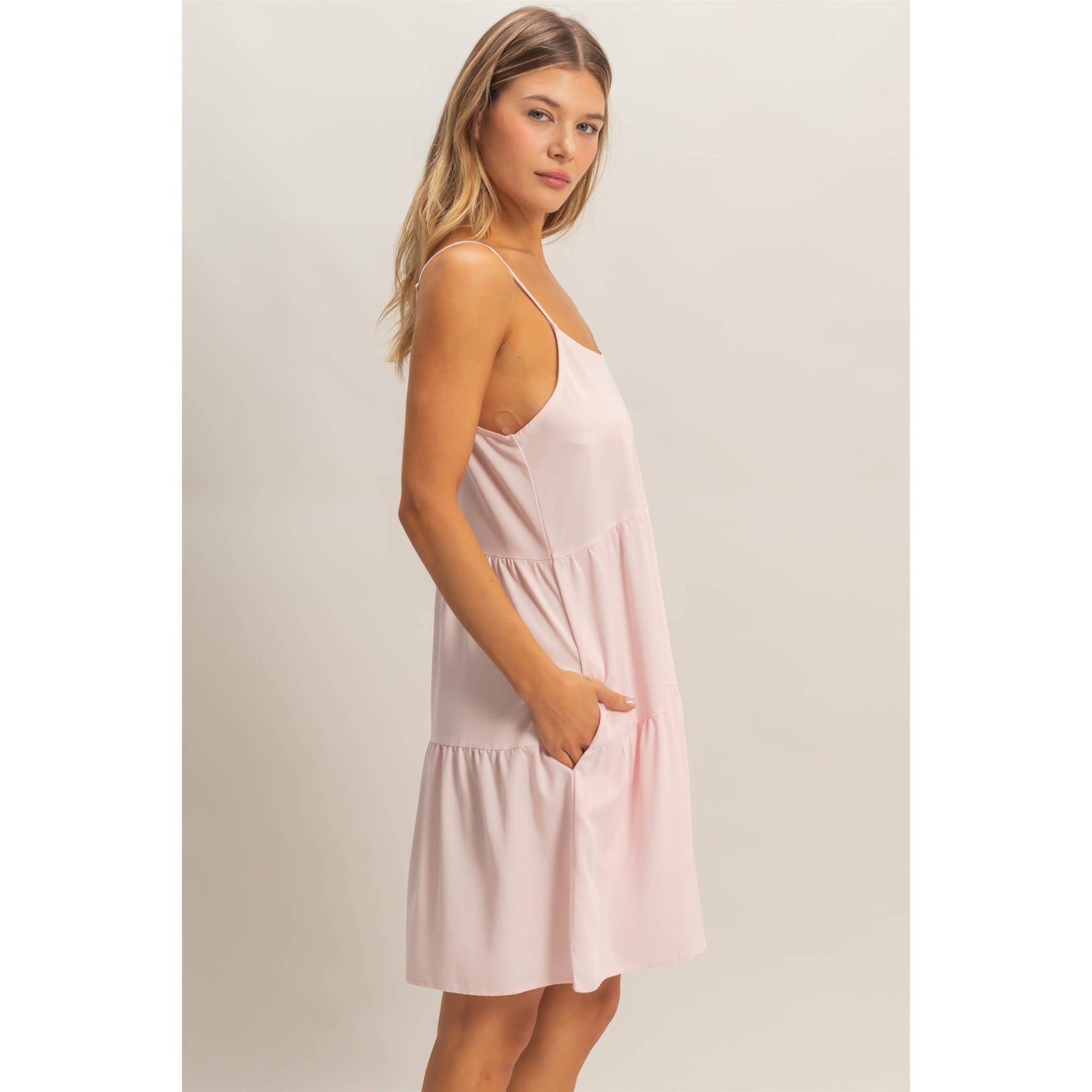 A charming tiered dress featuring delicate spaghetti straps and a relaxed silhouette. Pair with strappy sandals for a feminine look.