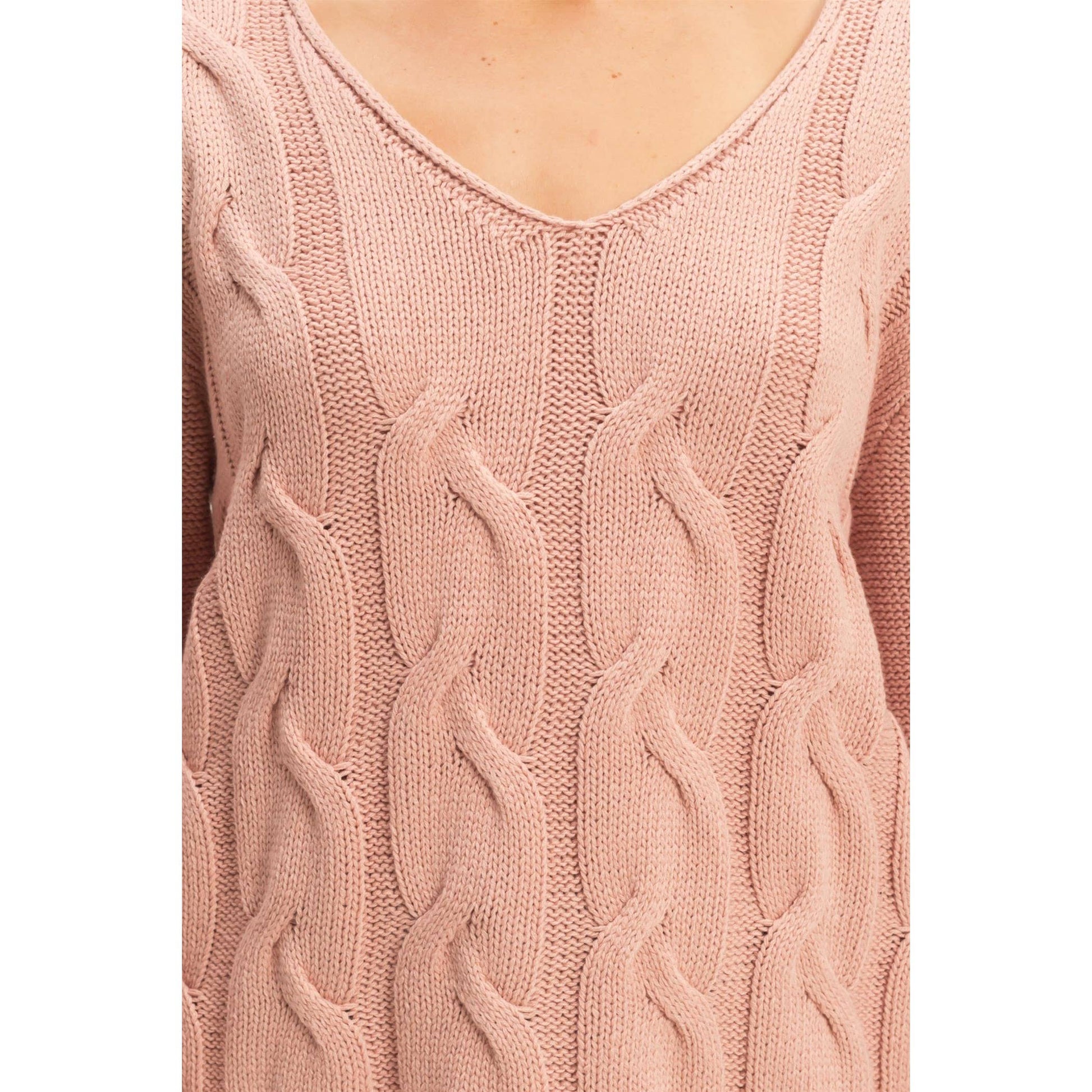 V Neck Cable Pullover Sweater